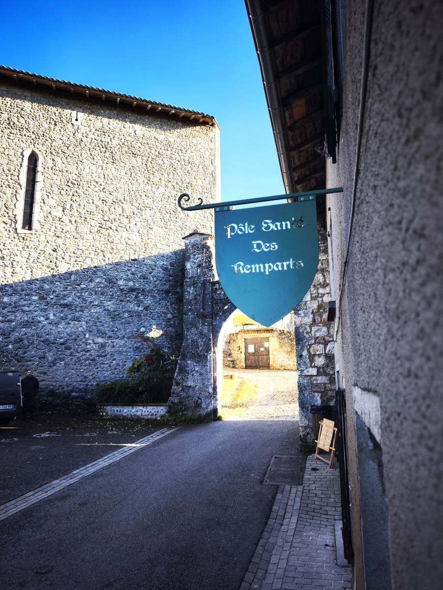 Nous avons récemment réalisé la fabrication et la pose d’une enseigne métallique sur mesure à Pérouges, pour notre client le Pôle Santé des Remparts, désormais installé dans ses nouveaux locaux situés à l’entrée de la cité médiévale.