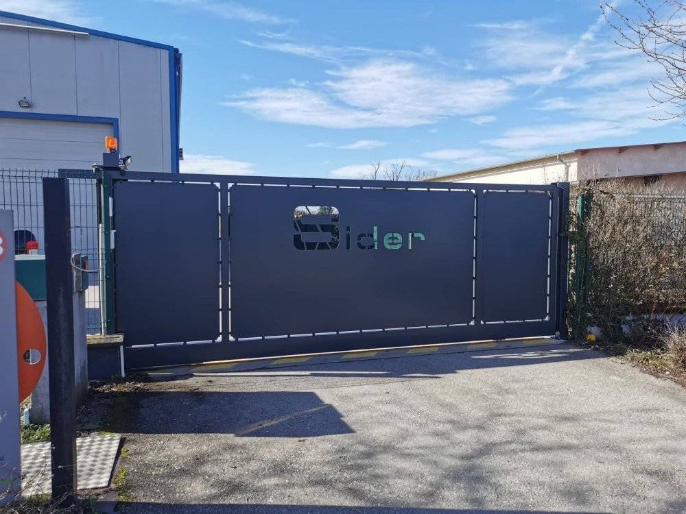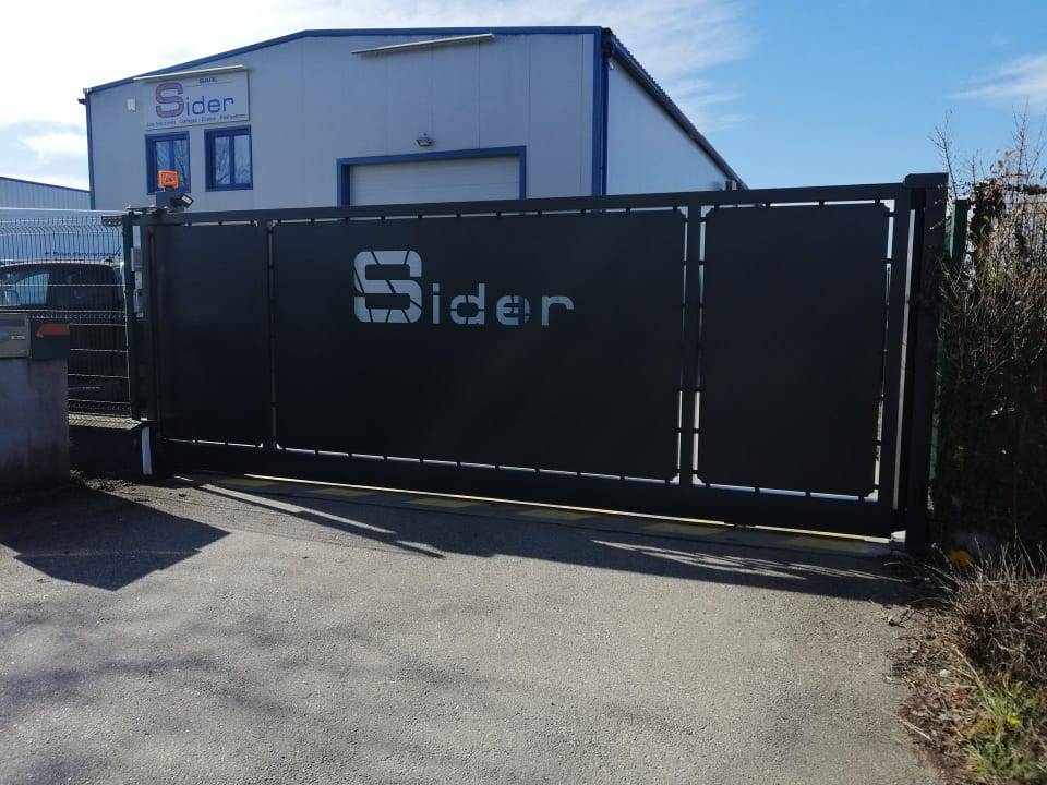 STEEL FERMETURE, a récemment réalisé, sur la commune de Meximieux la conception, la fabrication et l'installation d'un portail coulissant motorisé avec découpe laser du logo de l'entreprise Sider.
